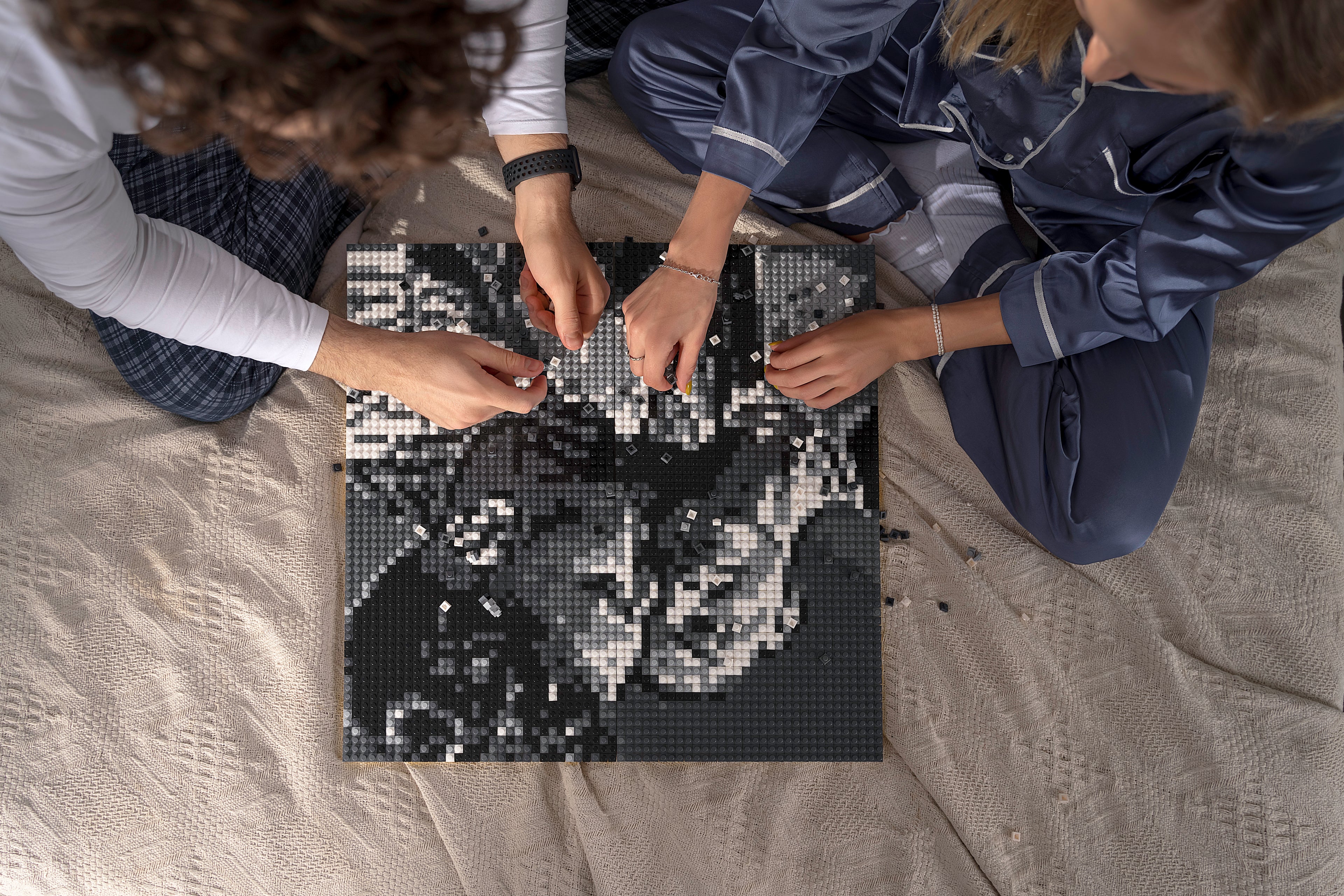 Du lädst dein Foto hoch, erhältst eine Bauanleitung und setzt das Bild Stein für Stein zusammen – ganz ohne Kleber.